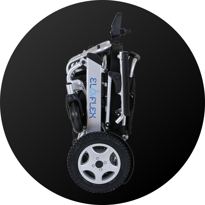 A hagyományos motoros kerekesszékek jellemzően nagyok, sok helyet foglalnak, súlyuk pedig meghaladja a 100 kg-ot. Emiatt nem könnyű behelyezni, sőt akár beemelni őket egy autóba, ha kirándulni készül. Otthon túl sok helyet foglalnak, és a vezetésük is nehézkes. Ennek azonban nem kell törvényszerűen így lennie. Az Eloflex teljesen modern megközelítést képvisel a motoros kerekesszékek kategóriájában, ugyanis alumíniumból vagy szénszálból készül. Egyszerű, egykezes mozdulattal zökkenőmentesen összecsukhatja, így minimálisra csökkentheti a szék által elfoglalt helyet, és a szék kivételesen alacsony súlyát kihasználva az autójában szállíthatja az eszközét.