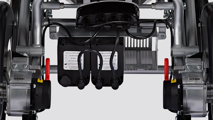 Gondosan odafigyeltünk az ergonómiára és a széles körű használhatóságra. Az intelligens botkormánytartó lehajtható, így közelebb húzódhat az asztal széléhez, a lábtámaszt pedig kényelmesen arrébb helyezheti az útból, ülés és felállás közben. A nagy méretű, levegővel felfújt hátsó kerekek, valamint az első tengely rugós megoldása még egyenetlen felületen is gondoskodik az optimális lengéscsillapításról.