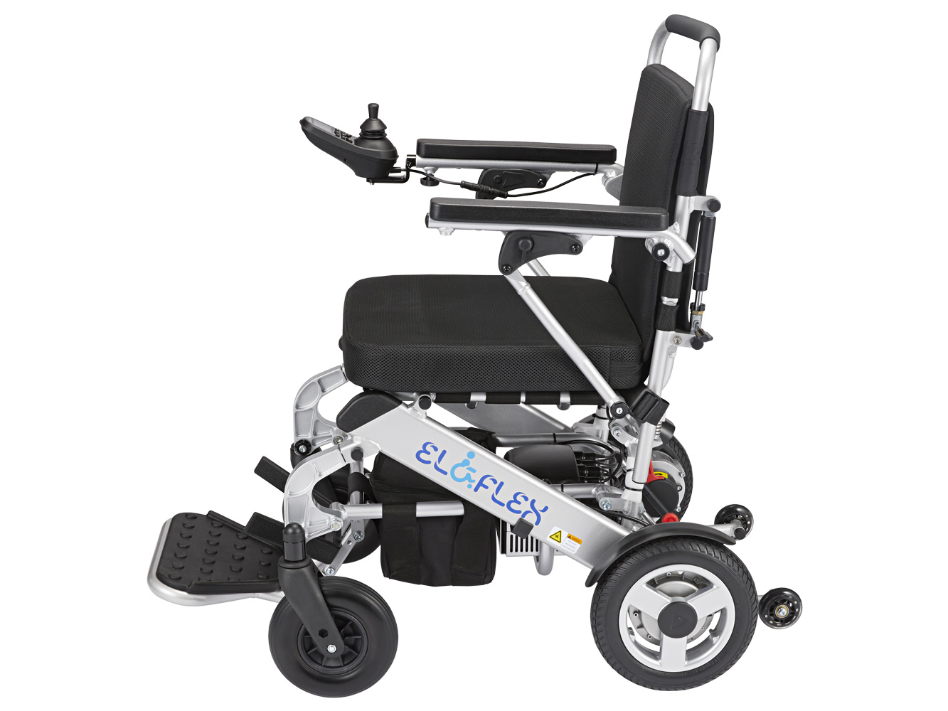 Az Eloflex L egy kompakt, sallangmentes motoros kerekesszék olyan felhasználók számára, akik nem szeretnének sokat bajlódni a segédeszközükkel közlekedés közben. Kényelmesen összecsukható mindössze néhány másodperc alatt, így könnyen magával viheti, ha autóval vagy repülőgépen utazik.
