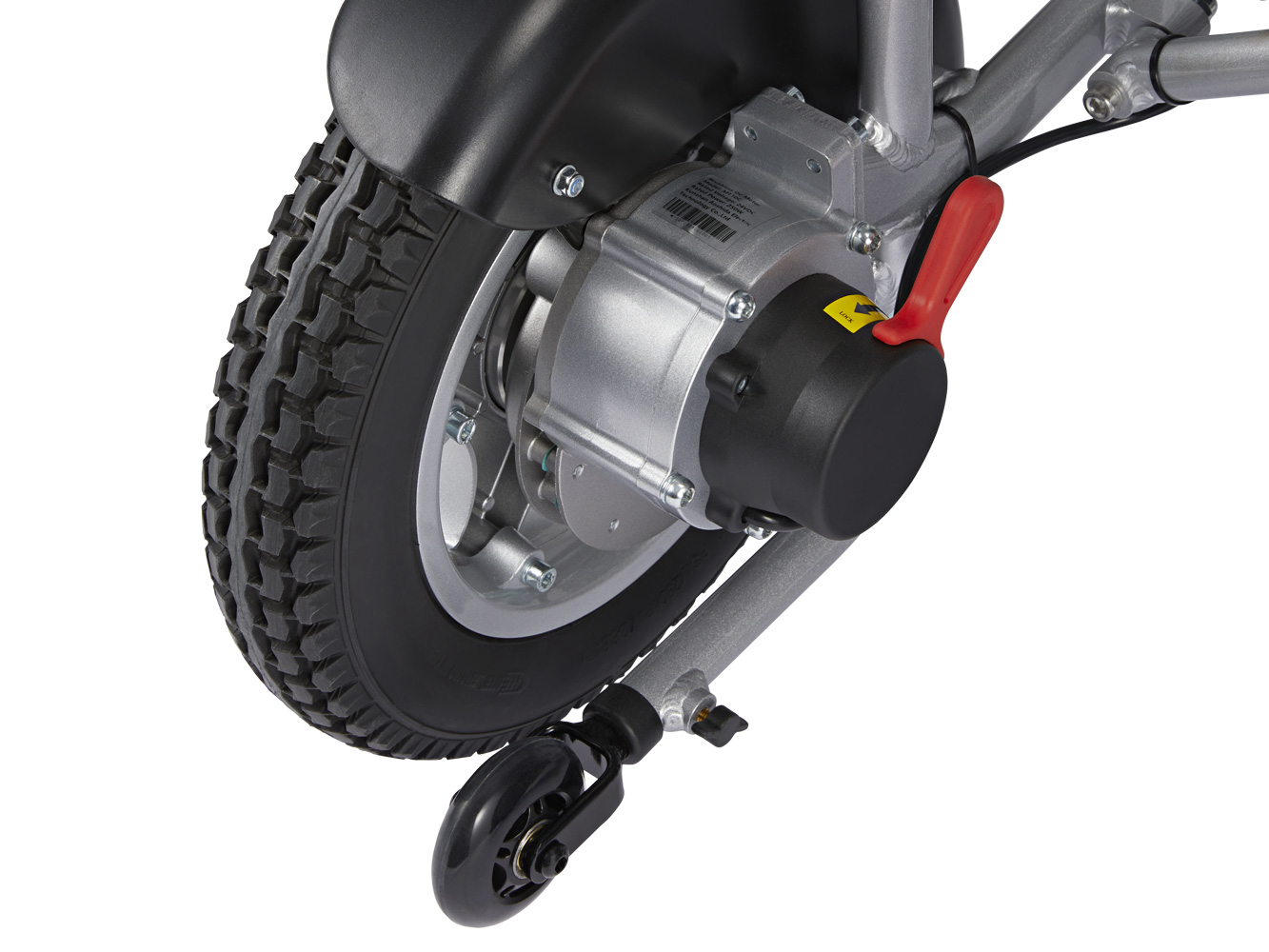 Ez a modell nagy, 12 hüvelykes, levegővel felfújt hátsó kerekekkel rendelkezik, amelyek minden felületen kiválóan megtapadnak. Sima és kényelmes utazásra számíthat még kavicsos vagy macskaköves utakon is.